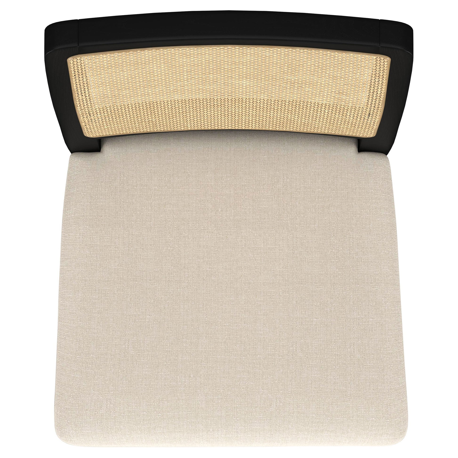 This dining chair combines modern comfort with organic charm, featuring a handwoven cane backrest crafted in Indonesia for a natural, textured appeal. The solid rubberwood frame provides durability and a warm aesthetic, while a beige linen-like upholstered cushion enhances its cozy style. Pirelli webbed seat construction ensures both comfort and lasting support. Reinforced with a sleek metal stretcher bar, this chair balances beauty and functionality.