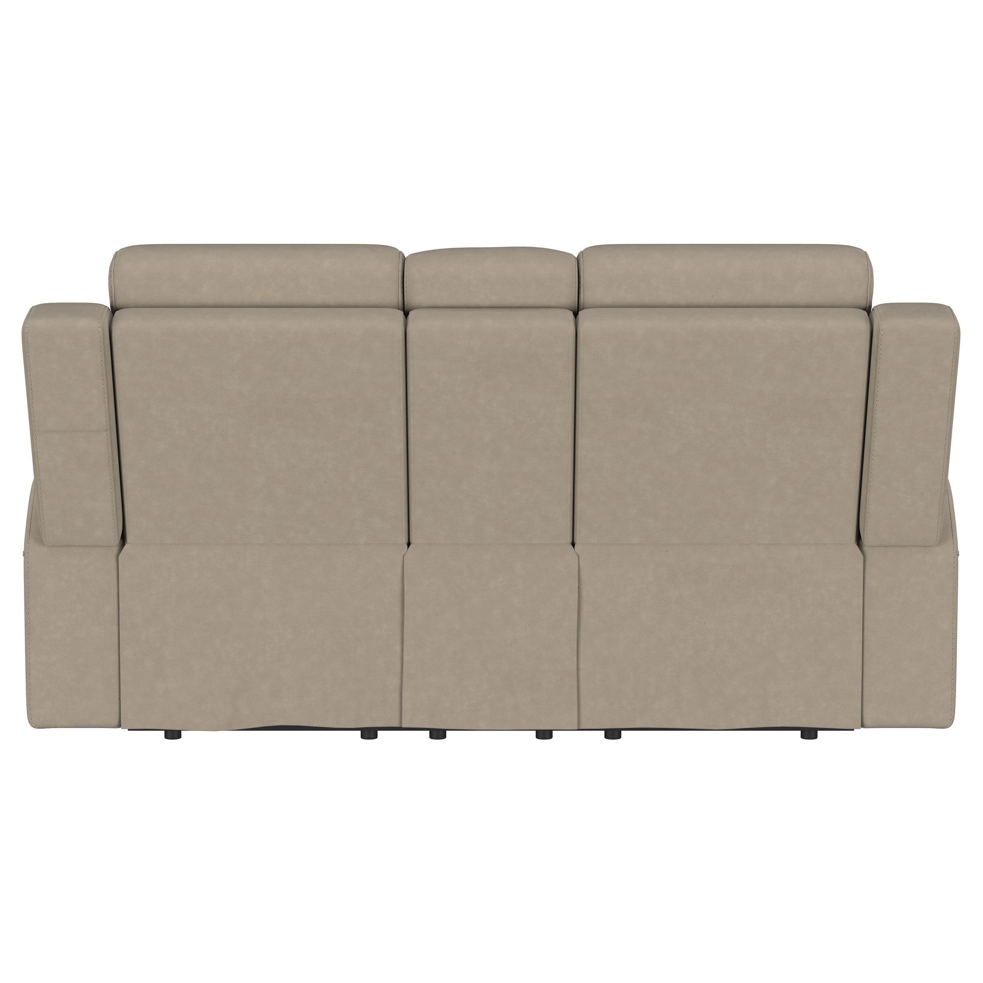 Revamp your living room or den with the inviting comfort of a modern reclining loveseat. Complete with a center console that adds storage and a pair of cupholders, this loveseat is sure to become your favorite on movie nights and game days. It features sleek track arms with modern tufted accents that create impeccable support. Suede-like upholstery has a soft, matte effect, perfect for augmenting with neutral appeal. Add a pair of throw pillows to bring a personal touch to this look.