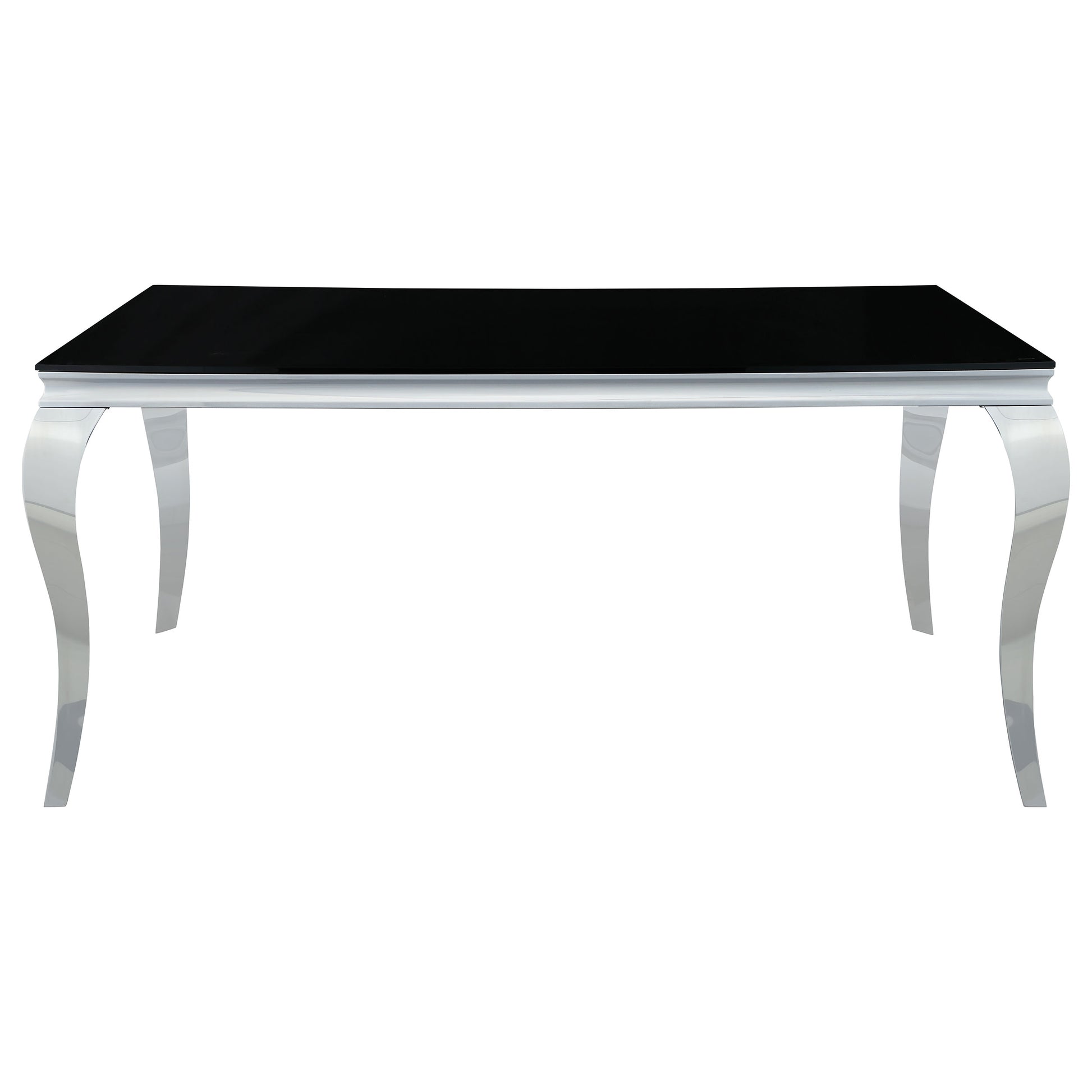 • Immerse in sophistication with the table's stainless steel legs curving gracefully beneath the 12mm tempered glass top, enhanced by beveled edges