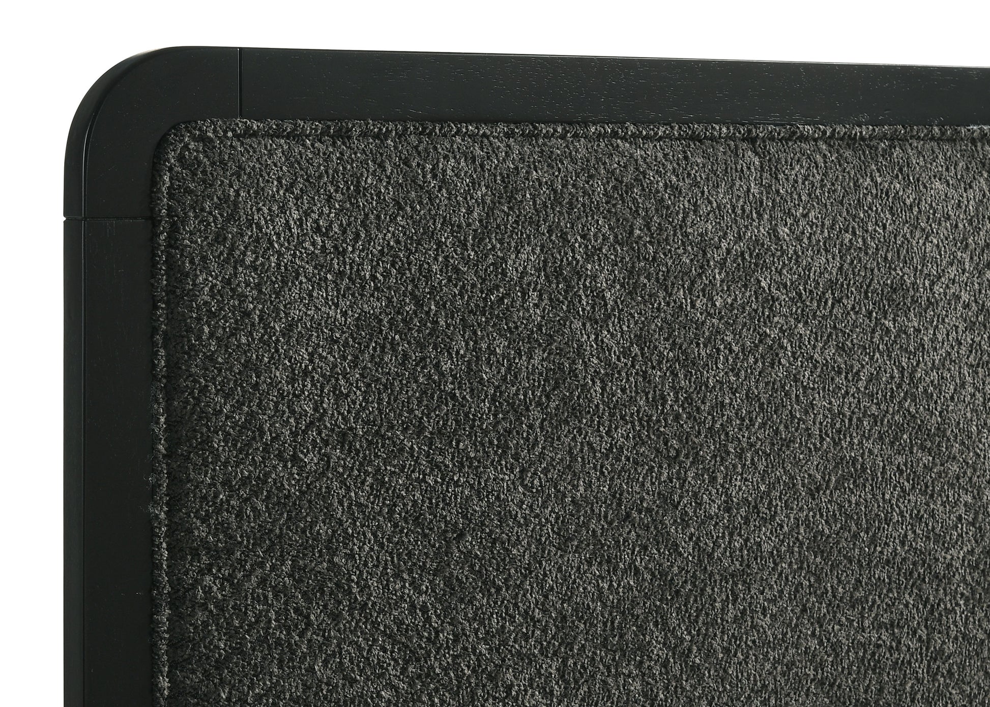 • Headboard is padded with foam and features charcoal upholstery with a soft, inviting look and feel