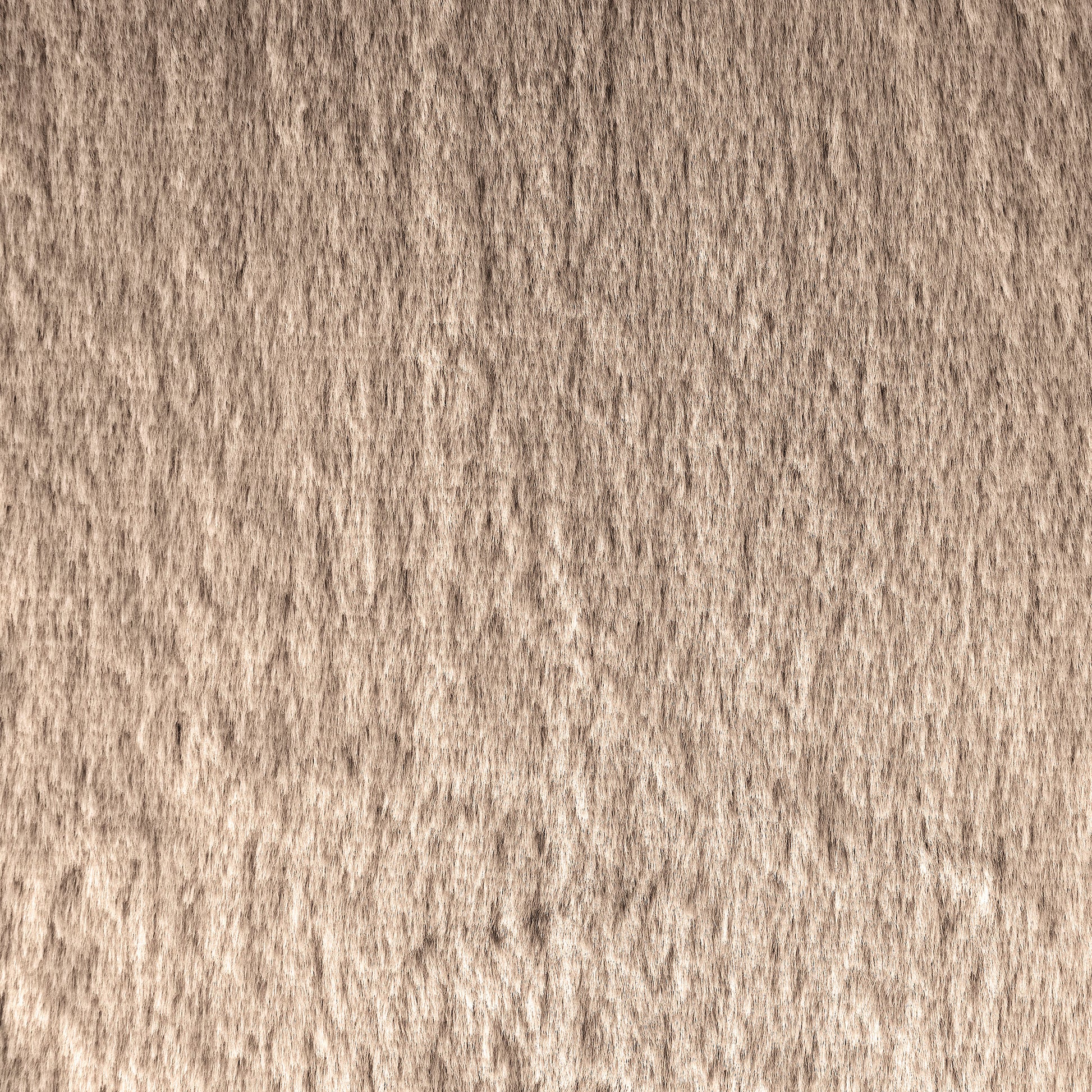 • Soft camel colored faux fur upholstery is warm and inviting in a sophisticated space