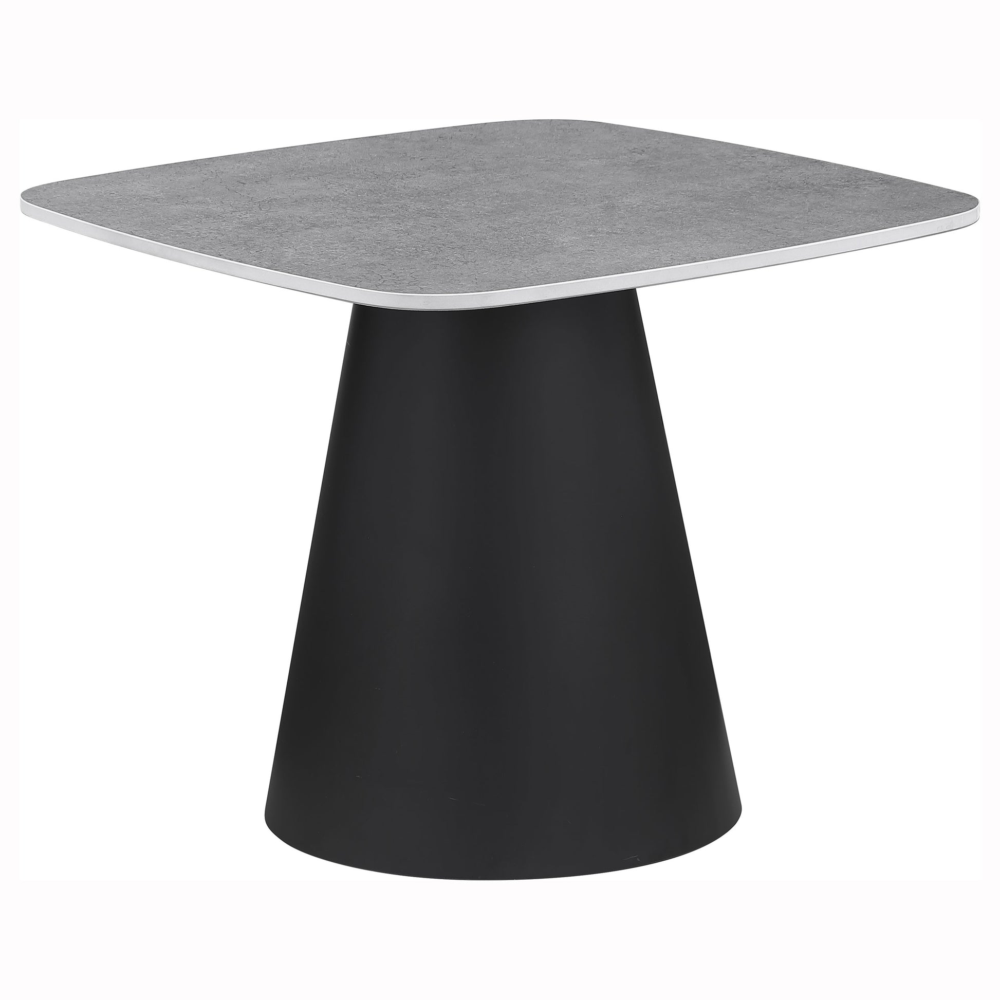This two-piece coffee table set captures modern artistry through sculptural form and mixed materials. Each table features a square top with softly rounded corners in a concrete-look finish, perfectly balanced on matte black conical bases. The nesting design allows for flexible arrangement and compact storage. Constructed from durable engineered wood and sturdy metal, this cocktail table set makes a bold impression in any contemporary living space.