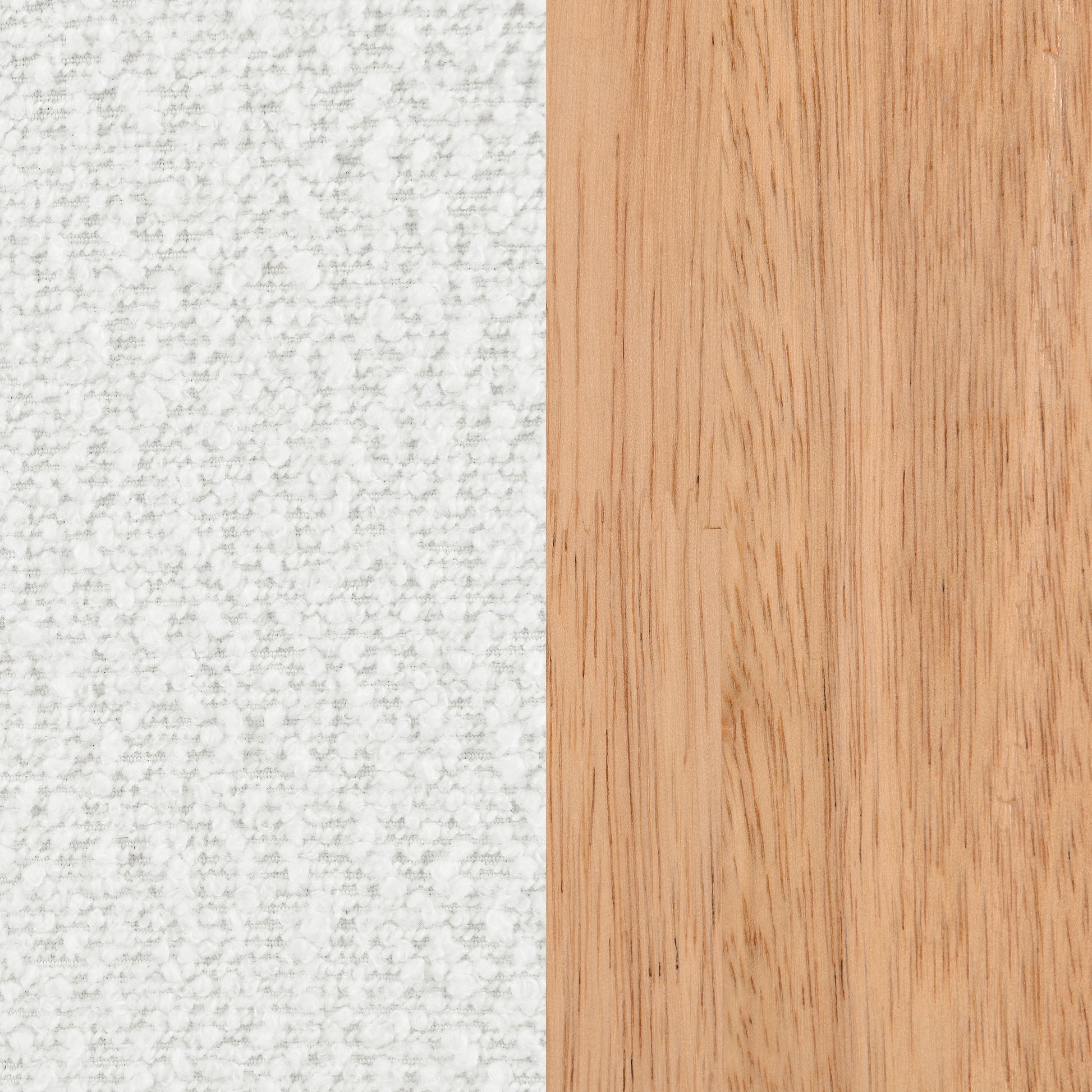• Neutral boucle upholstery creates exceptional texture and on-trend dimensionality in a sitting area