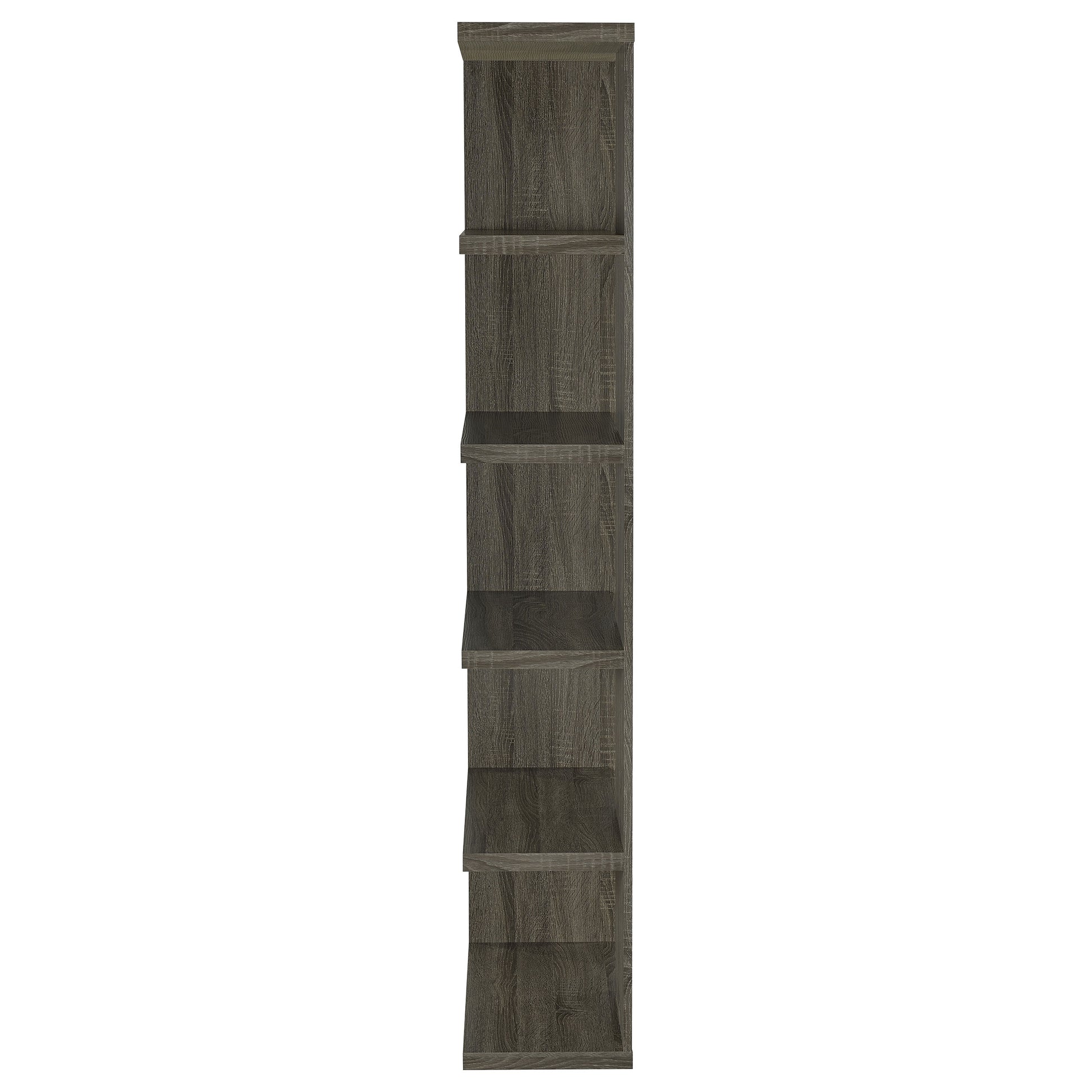 • Modern bookshelf with five staggered shelves for stylish organization