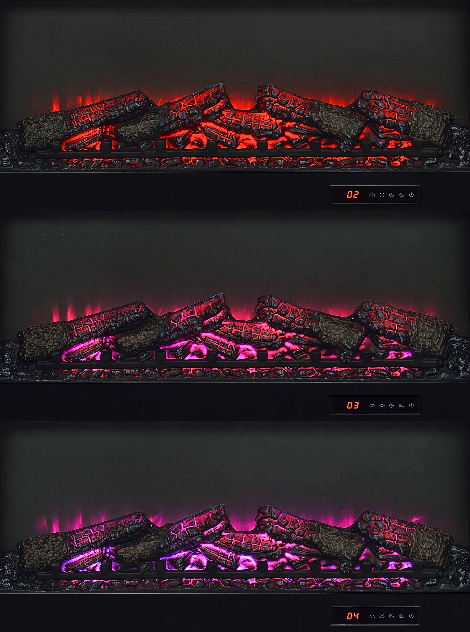 • Realistic burning ember display without heat functionality delivers visual warmth and ambiance