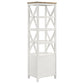Enhance your TV viewing experience with this versatile entertainment center that combines rustic farmhouse, coastal, and cottage styles. The brown ash veneer top and contrasting white frame with antique silver knobs create a charming look. Ample storage and display space make it practical, while the durable construction ensures longevity. The symmetrical X-trellis media towers on each side add a unique touch of style.