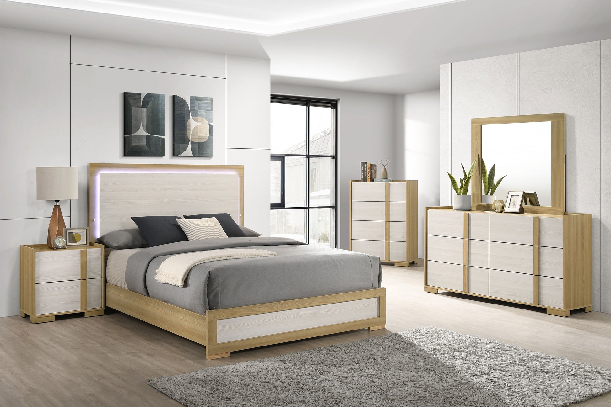 Hyland Eastern King Panel Bed LED Headboard Natural