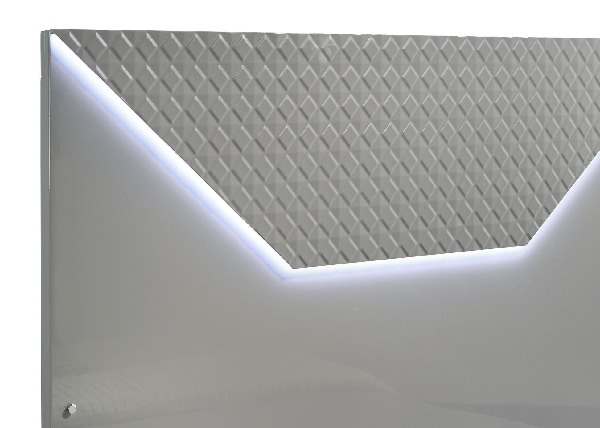 Upgrade your bedroom with this luxurious five-piece set, featuring a bed, nightstand, dresser, mirror, and chest. The set showcases a high gloss finish and 3-dimensional diamond tile emboss, offering a contemporary Italian aesthetic. Each piece is designed for both style and practicality, with ample storage options and thoughtful details like felt-lined top drawers. The bed includes a touch LED light in the headboard, enhancing the ambiance of your space. This set is ideal for those who desire a sophisticated and cohesive bedroom design.