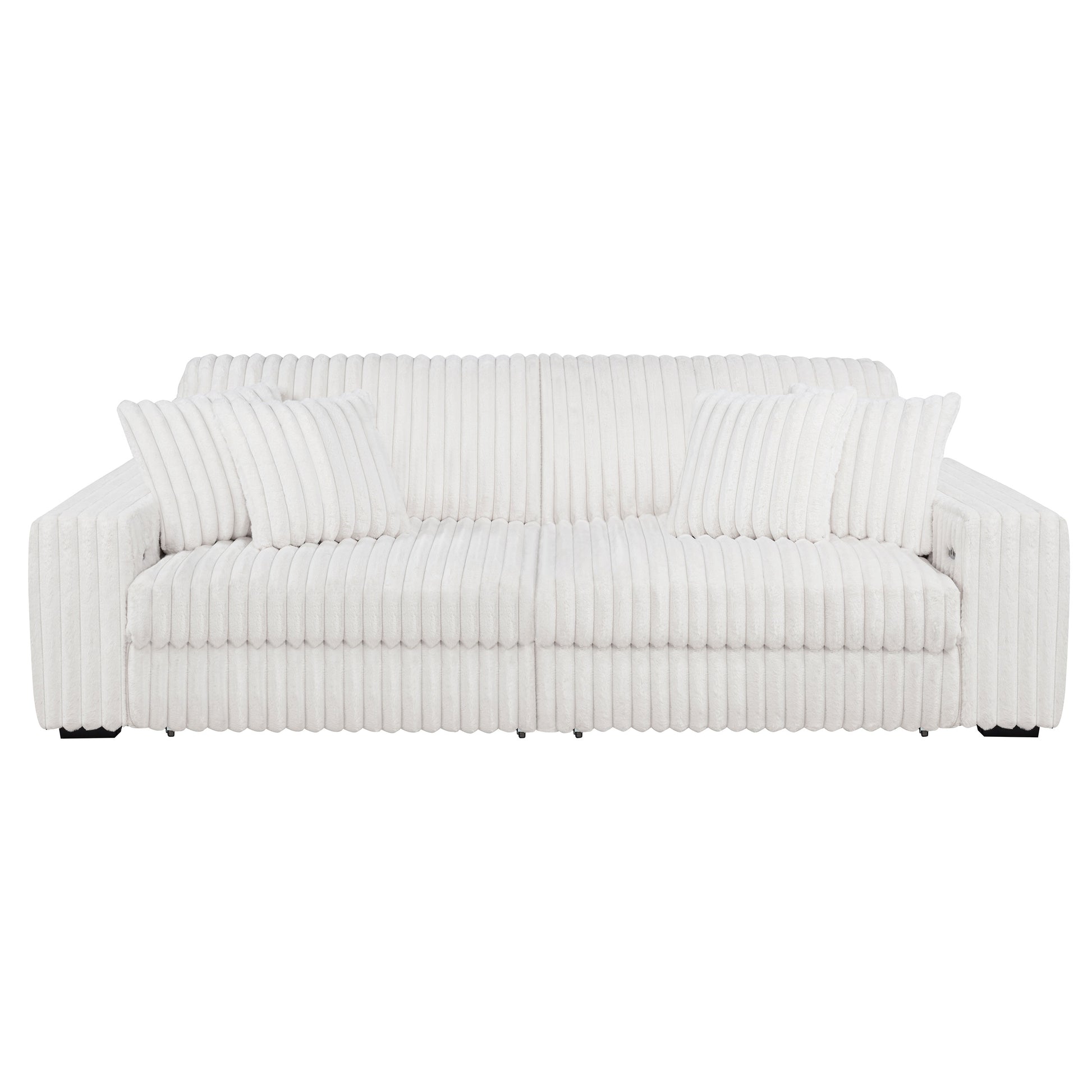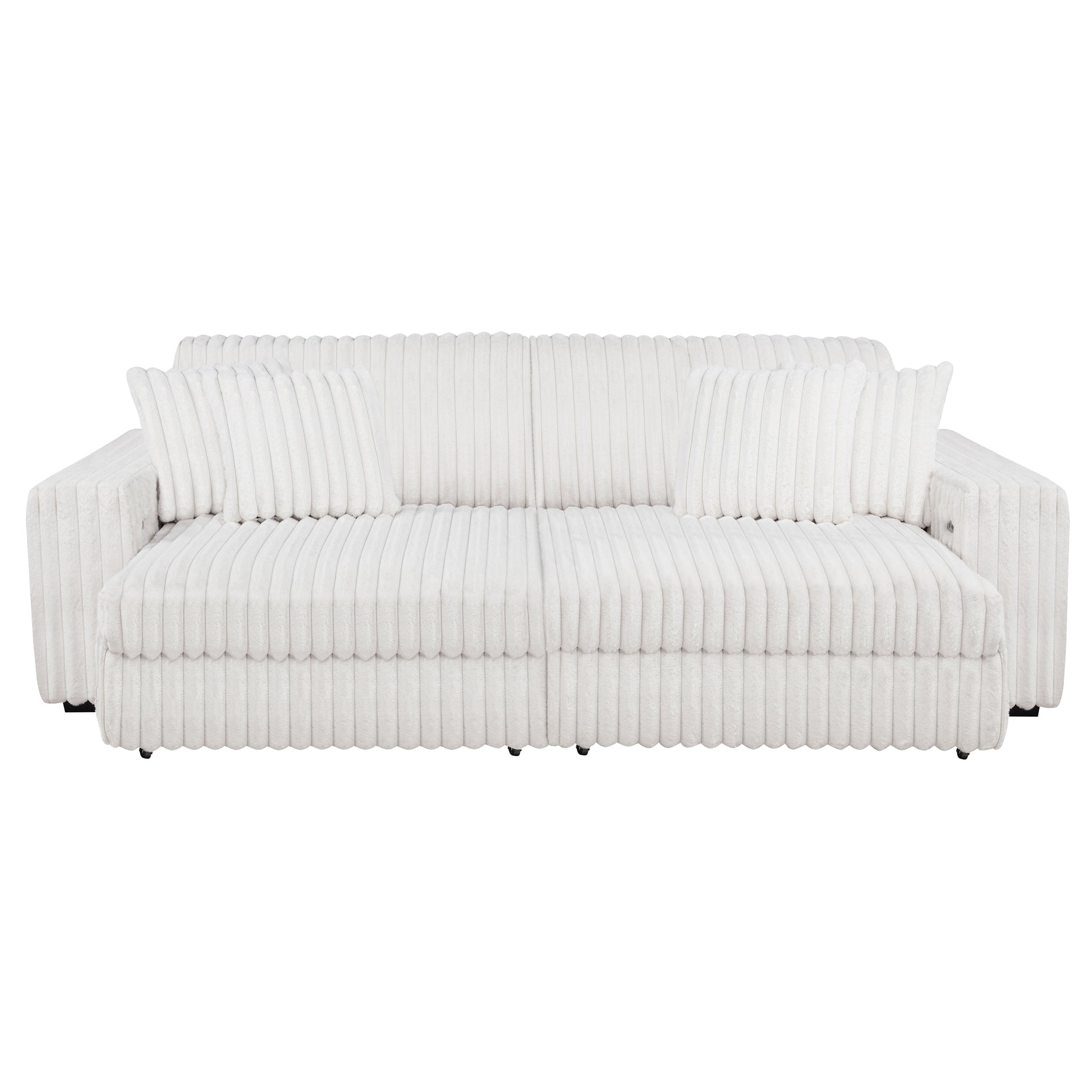 Striking and indulgently soft, this modern sofa set blends bold styling with innovative comfort. Deep vertical channel tufting enhances the rich corduroy upholstery, while dual power chaise functionality allows either side to extend independently, transforming the sofa into a full lounging surface. Wide arms, plush foam cushioning, and an integrated control panel with USB-A and USB-C charging bring next-level convenience. Designed for luxurious, tech-savvy relaxation.