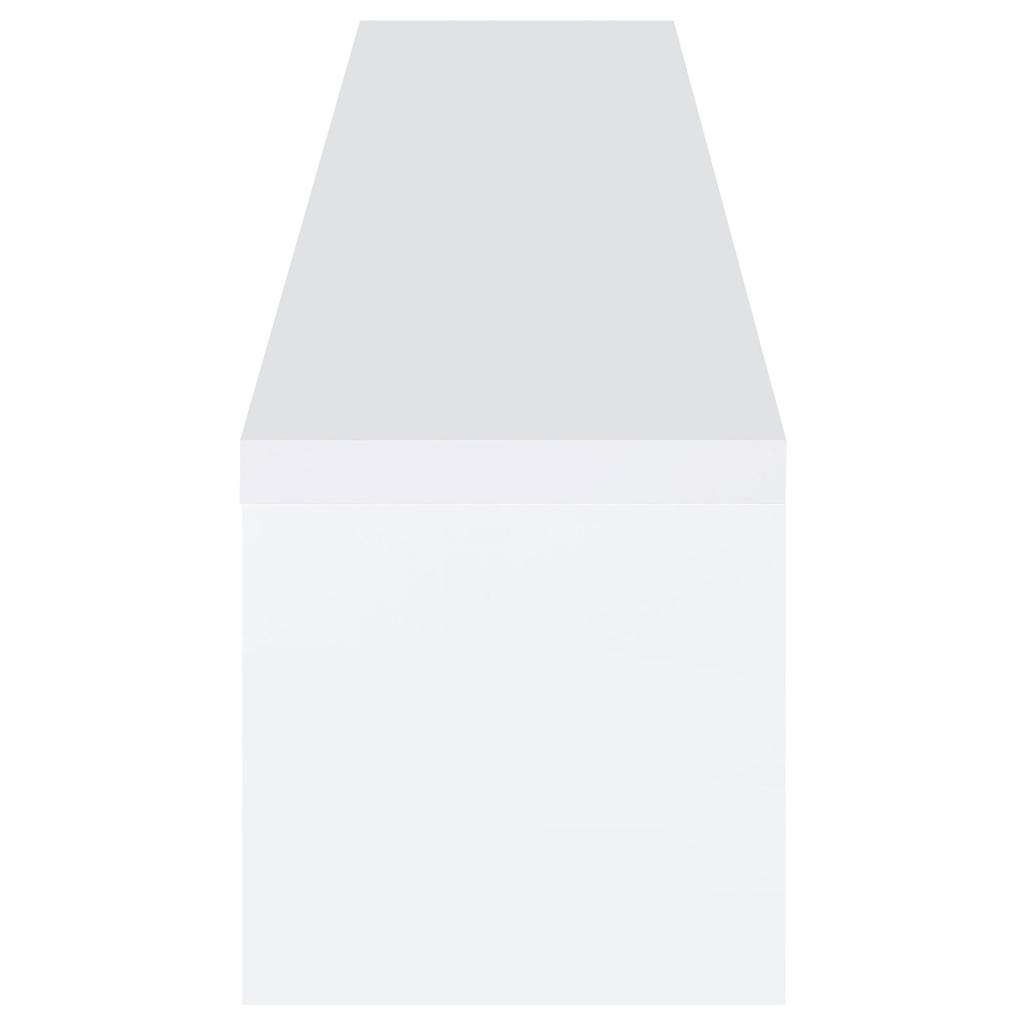 • Sleek, modern TV stand with pristine glossy white finish and clear glass accents