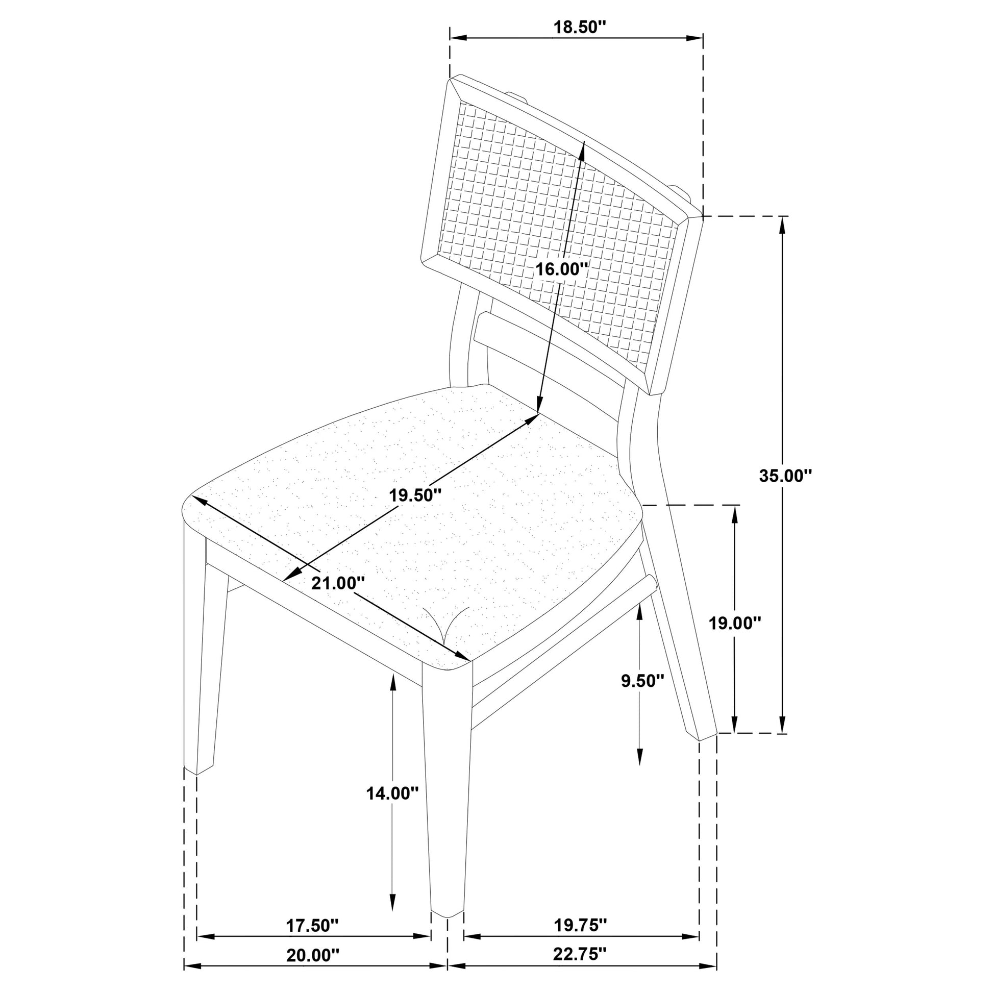 • Hand-woven radio weave cane backrests on chairs paired with foam seat cushions in beige fabric
