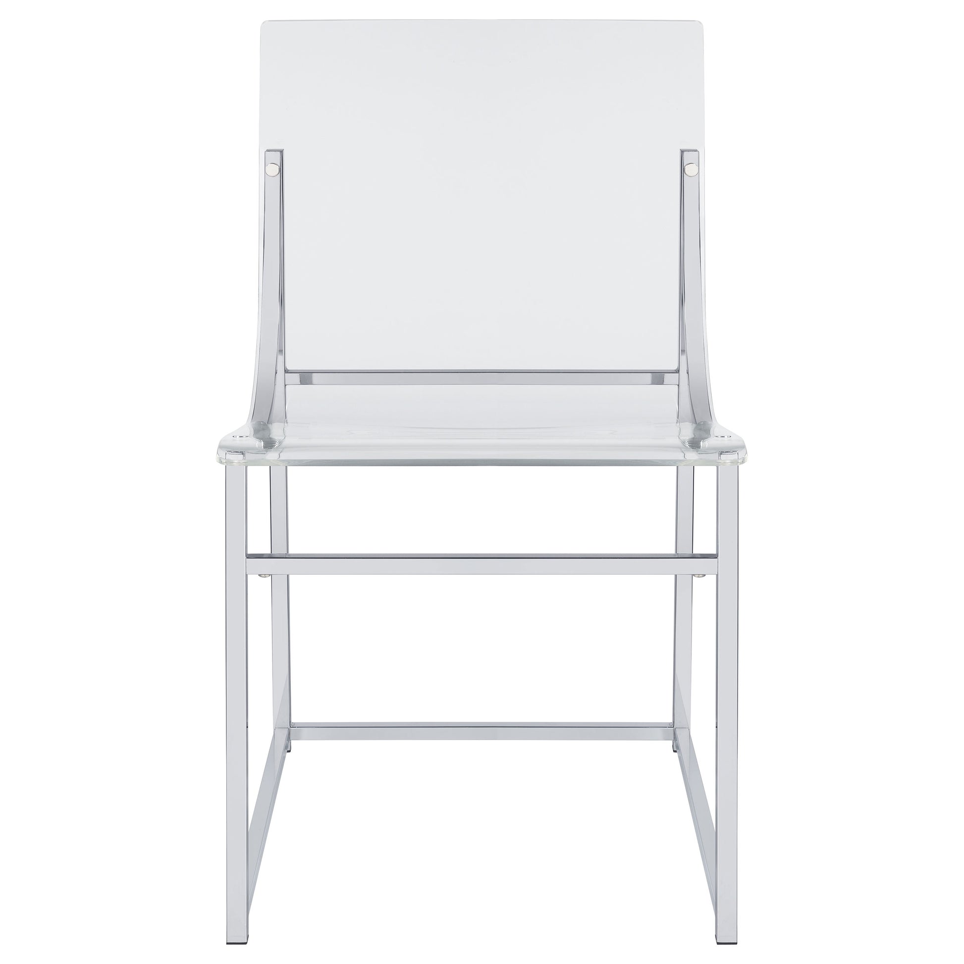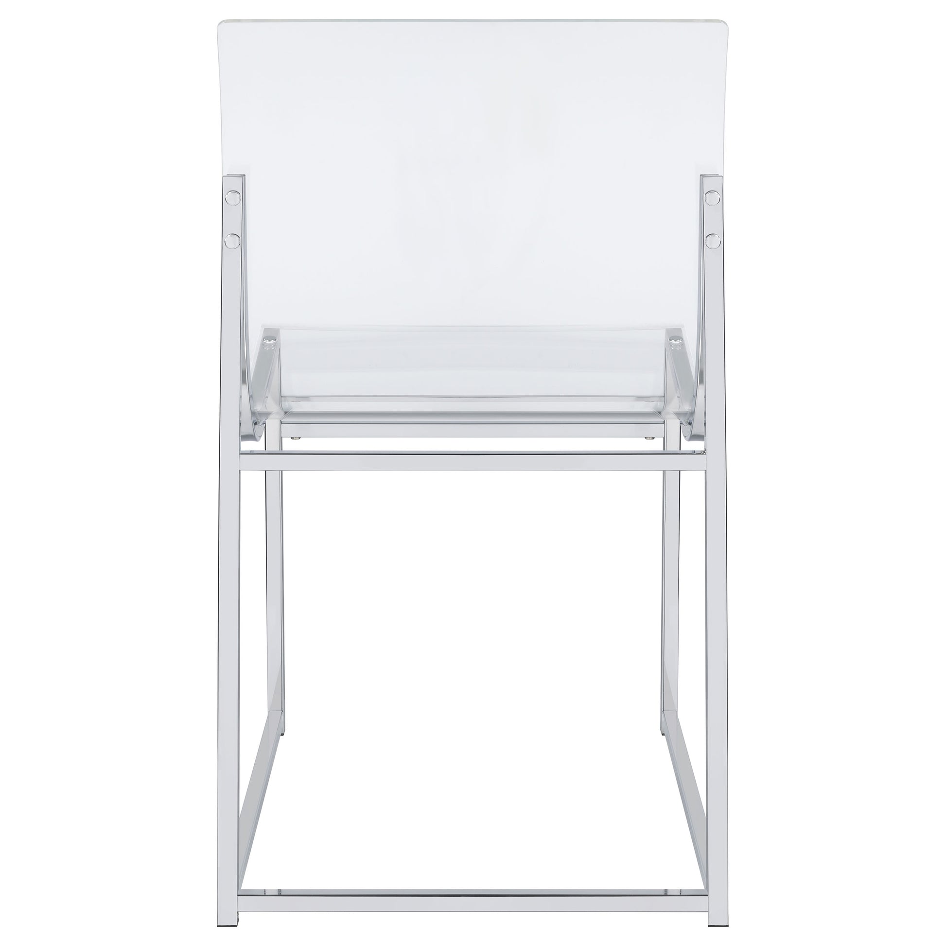 • Chairs feature minimalist clear acrylic seats with graceful curves for comfort