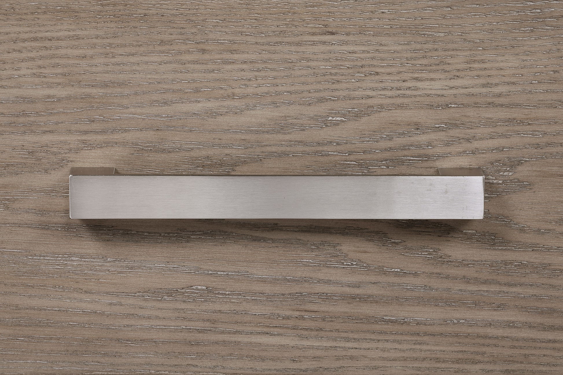 • Mitered trim adds dimension while a chrome finish bar pull completes the look