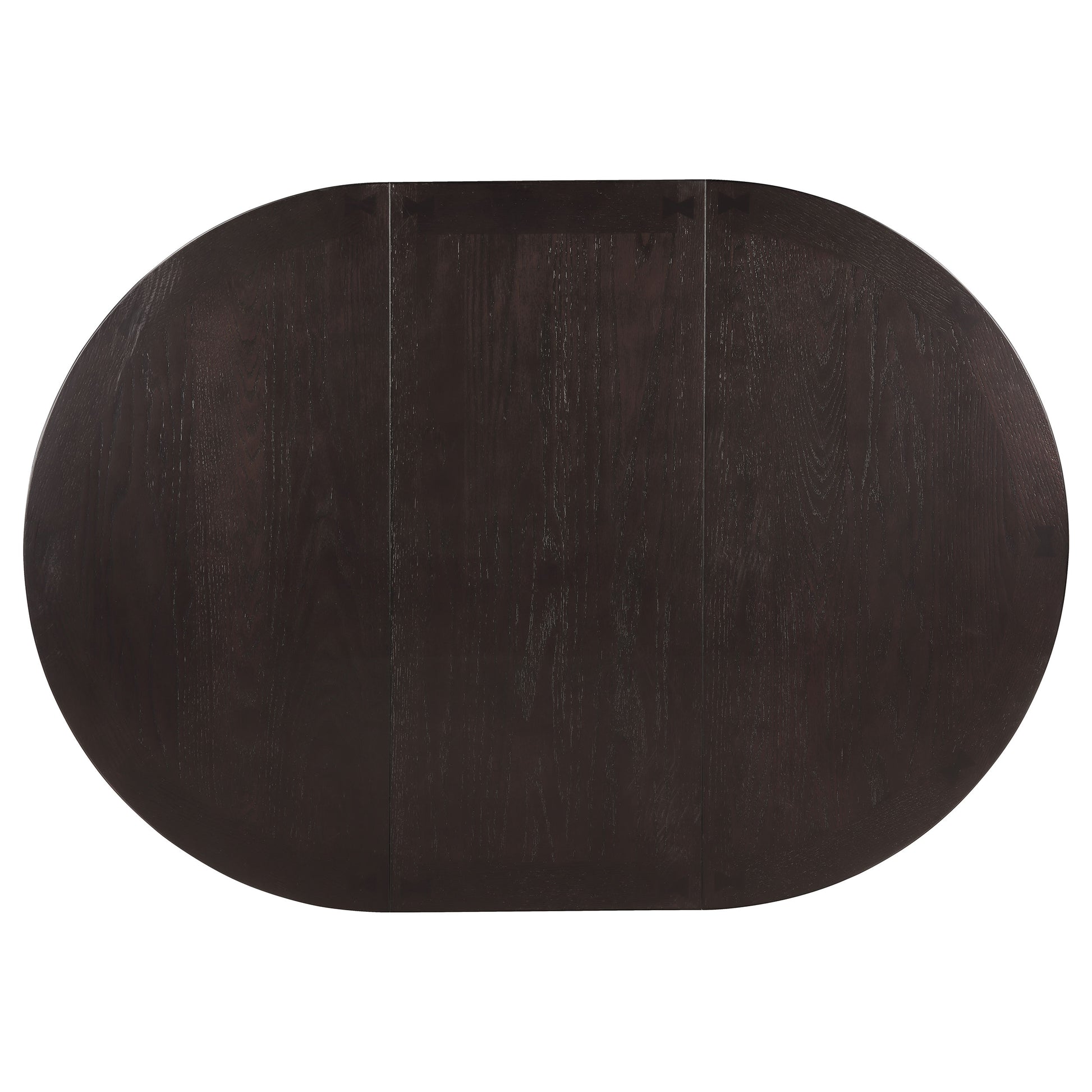 Blending transitional design with everyday versatility, this oval dining table is perfect for family meals or gatherings. The 18-inch extension leaf allows you to accommodate additional guests with ease, while the rich espresso finish brings warmth to your dining space. Its sturdy pedestal base features a built-in storage compartment and open shelf, keeping dining essentials within reach and surfaces clutter-free. Crafted from solid rubberwood, engineered wood, and oak veneer, it balances durability with refined craftsmanship.