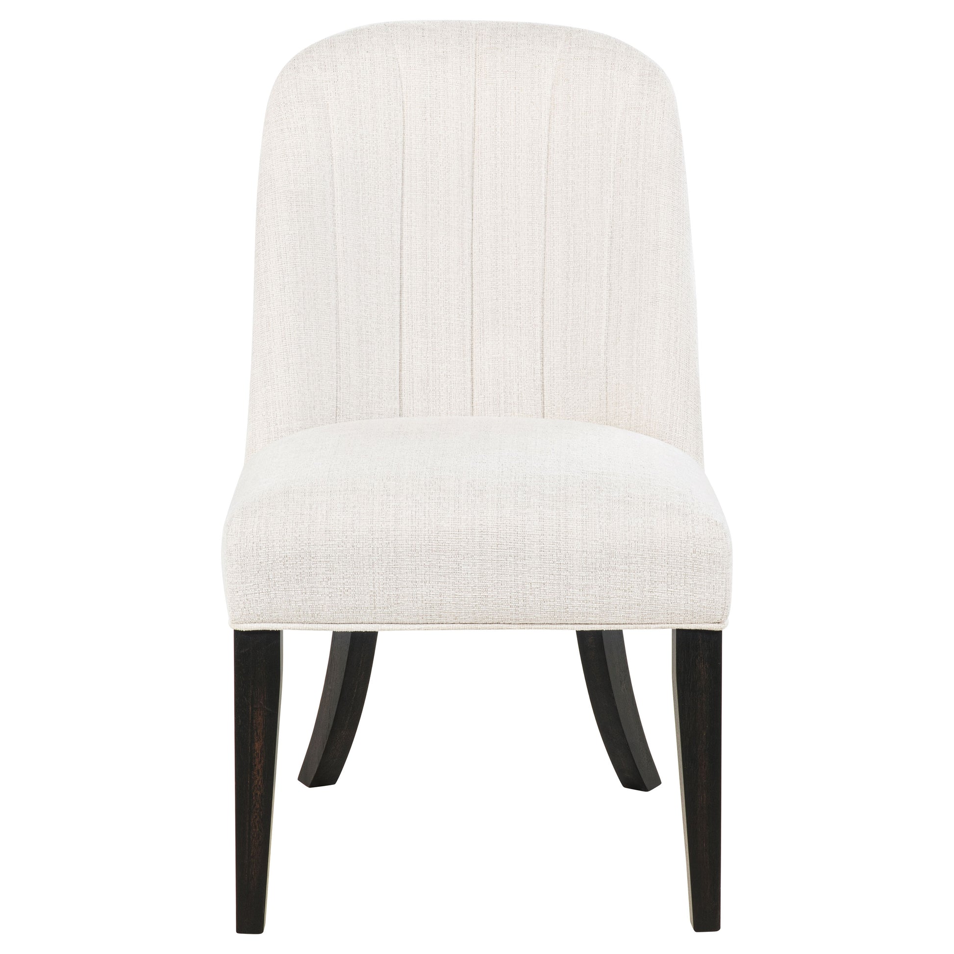 • Side chairs upholstered in cream fabric with soft vertical channel detailing
