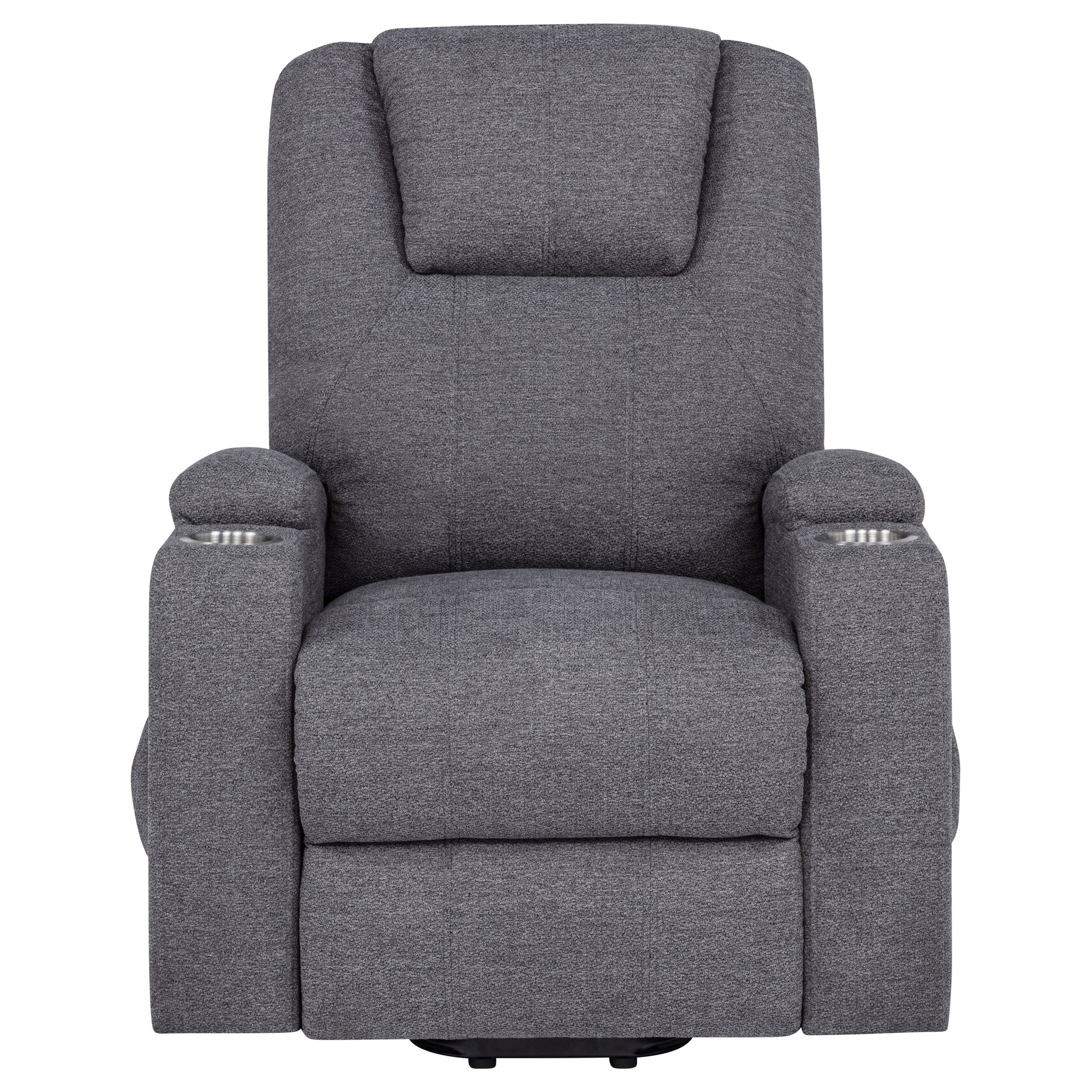 • Stainless steel cup holders on both arms keep beverages secure and accessible