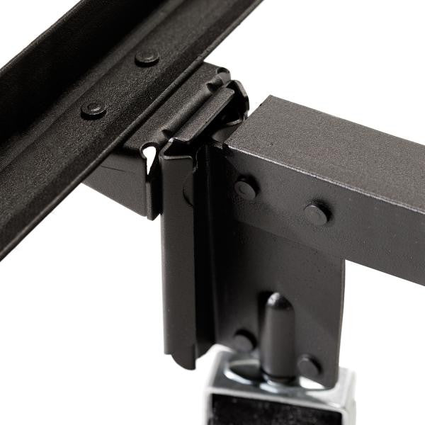 Steelock® super-duty bed frames are guaranteed to last; evident of its lifetime warranty. Every aspect of the Steelock® bed frame is reinforced with the best engineering and heavy-duty steel necessary to provide a strong foundation for sound sleep. Secure wedge connections can support any practical weight and require no tools for assembly. This frame stands on six rug rollers that are 2 1/2" wide (2 are locking rollers), plus additional support from a 2.5" double rail center brace. The frame is constructed with bolt on plates and an extra-wide offset to hook-in to virtually any headboard and footboard.