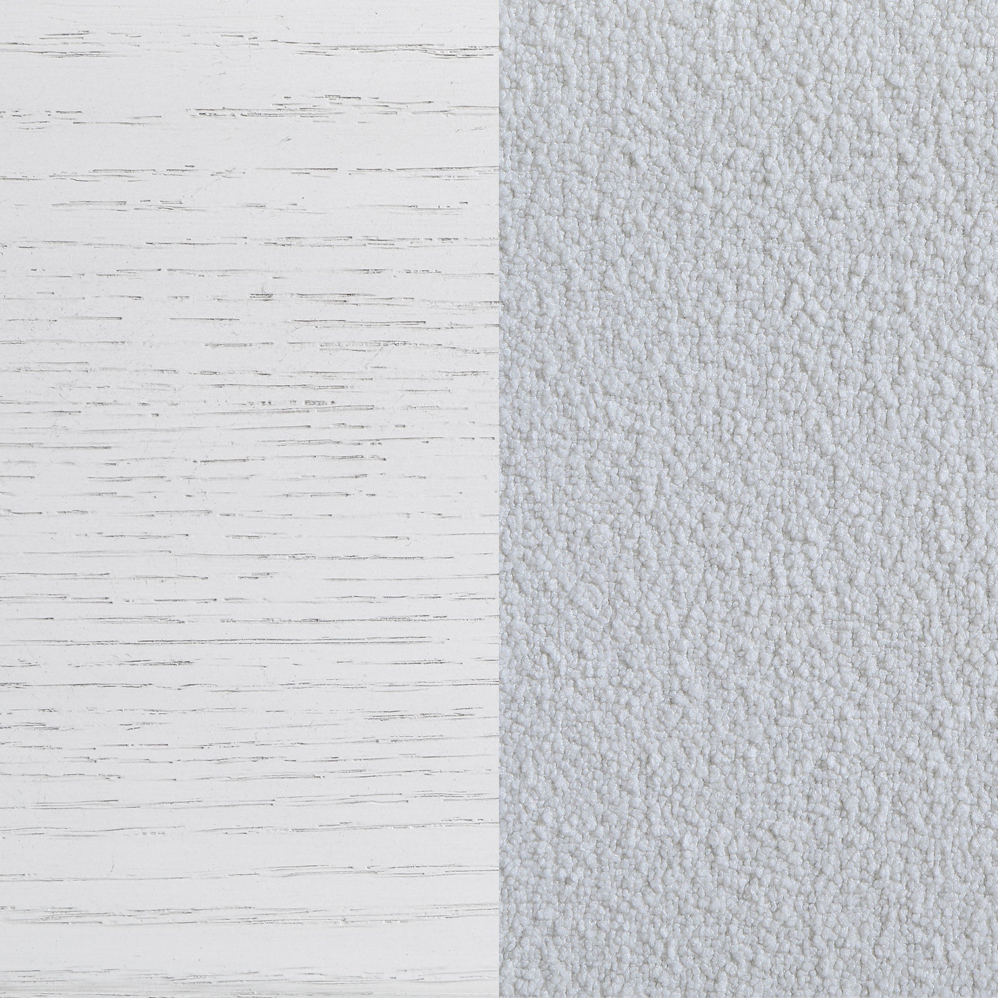 Refresh the look and feel of your bedroom with the inviting character of a modern upholstered bed. The bed features a wood frame in a distressed white finish that highlights its grain details. The headboard is a squared design complete with a padded panel upholstered in white for a monochromatic effect that's clean and contemporary. A low footboard completes the look and creates an open, inviting profile for your bedroom.