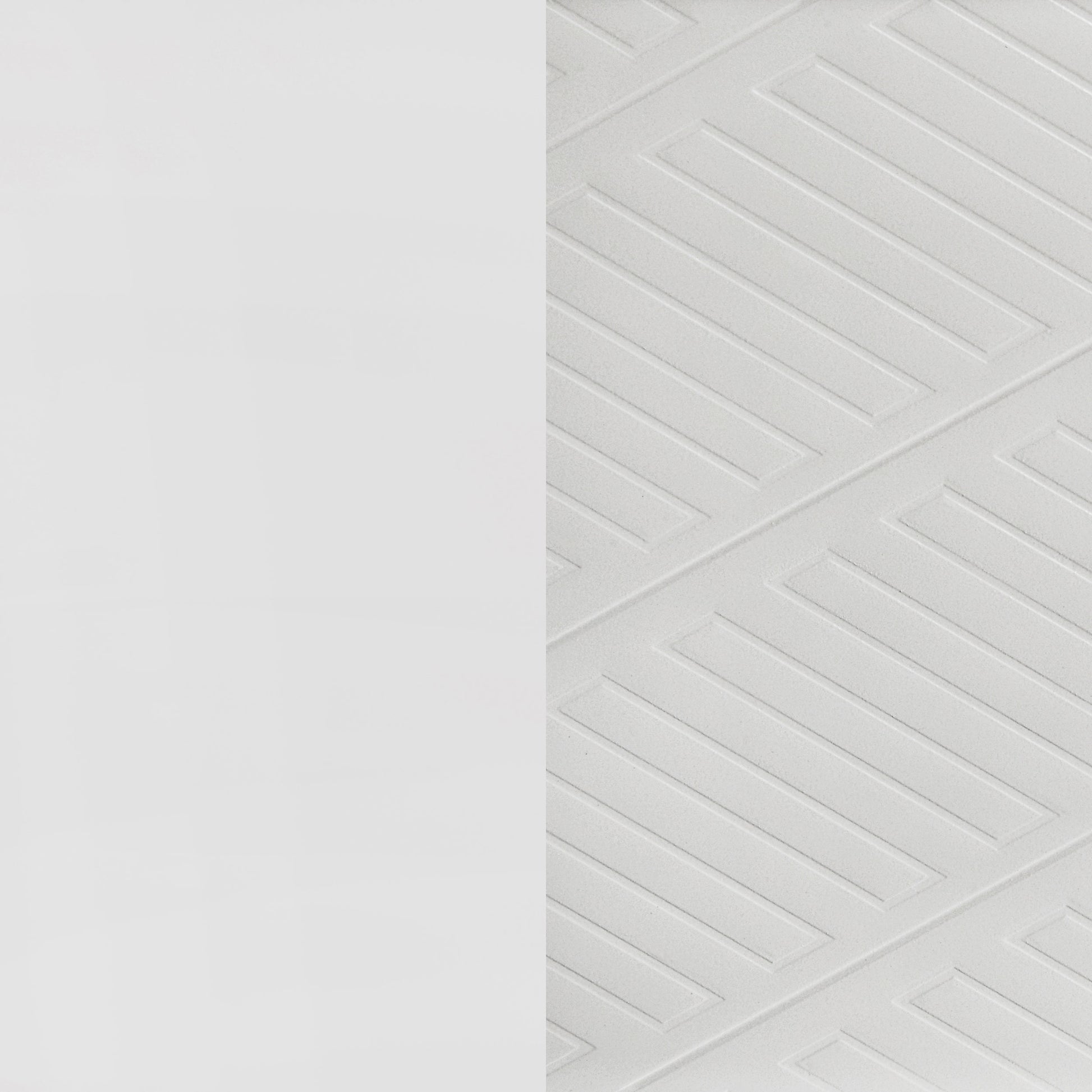 • White finish with picture framed recessed panels and embossed herringbone graphic patterns