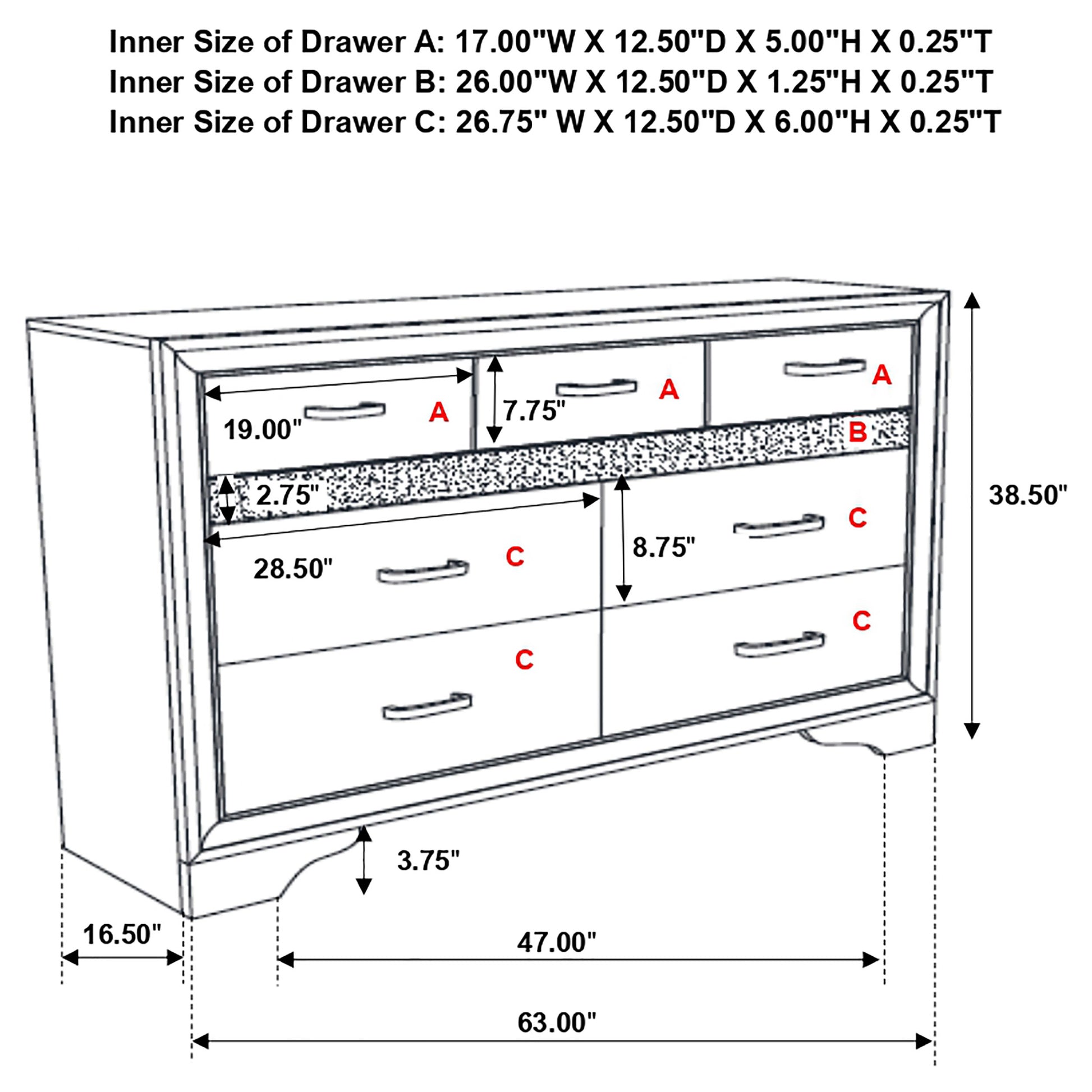 Miranda 7-drawer Dresser with Mirror Black