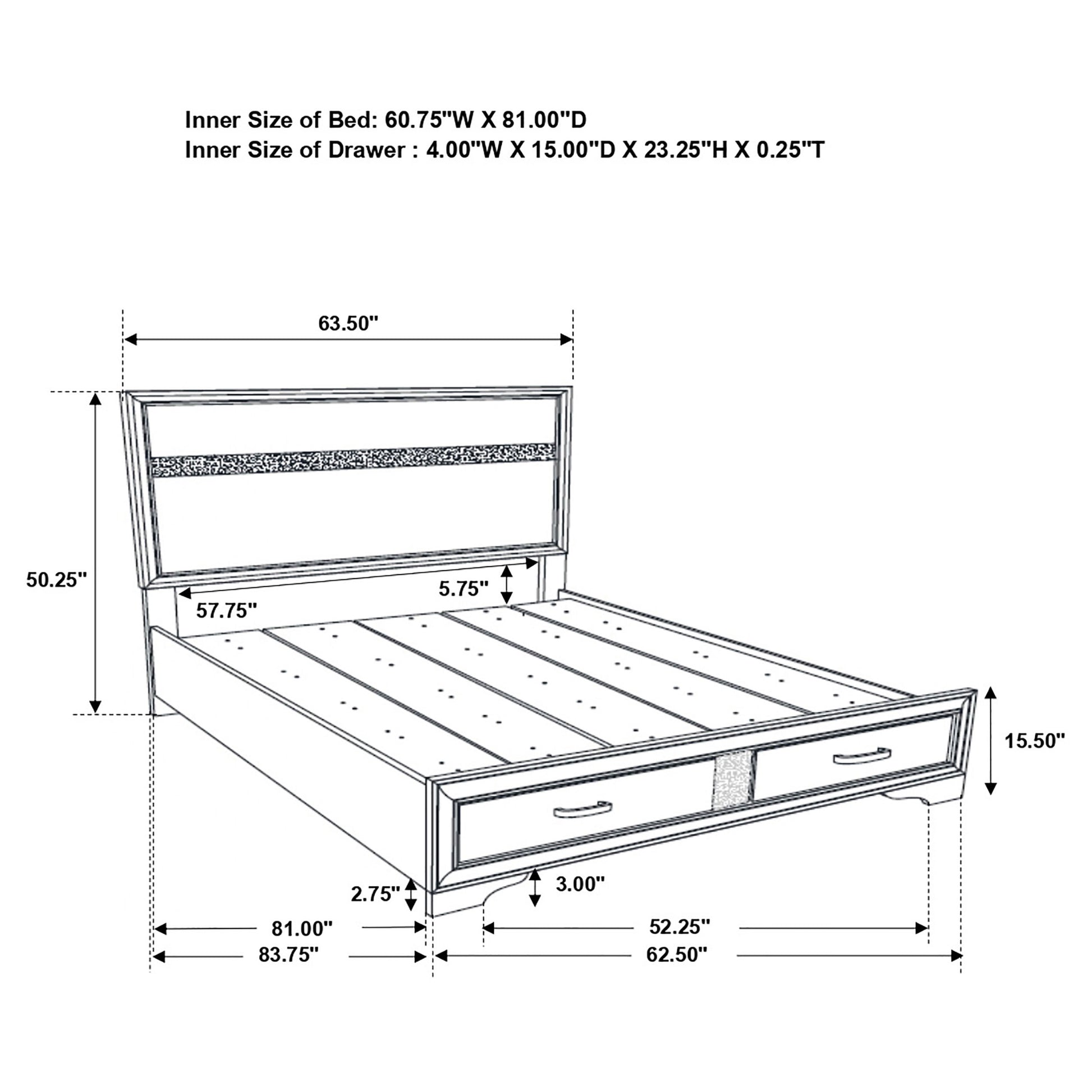 Create the bedroom of your dreams with this elegant, five-piece furniture set. Complete with a bed, nightstand, dresser, mirror and chest, it has all you need to complete your space. Each case piece includes a hidden jewelry drawer to keep valuables safe and secure. The two additional drawers built into the bed are ideal for storing shoes, bedding, clothing, and more. Each piece in this set is finished in a solid color for an appealing, monochromatic look.