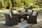 Al fresco living is easy to love with this multi-use table. Its raised height makes it perfect for everything from mealtime, game time, a round of cards or a round of drinks. Resin wicker over a rust-free aluminum frame lends an upscale aesthetic that’s downright durable. Aluminum top is conveniently water and stain resistant.