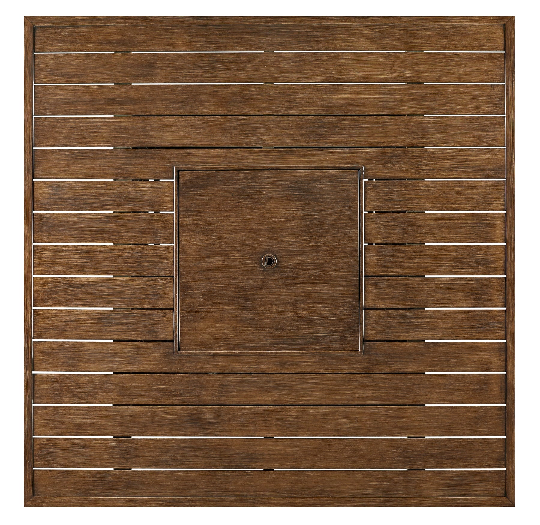 | Details | Accommodates up to 8; bar stools sold separately, Door conceals gas propane tank (not included), Rust-proof aluminum frame with wood-look tabletop, Side panels accented with all-weather, handwoven resin wicker, 56" square fire pit table with CSA-approved 55,000 BTU stainless steel burner, glass beads, burner cover and enclosed storage area with shelves, Battery-operated ignition system with adjustable flame control; battery included, Convertible to natural gas, Gas line or propane tank connector hose not provided, Assembly required, Comes with protective weather cover | |