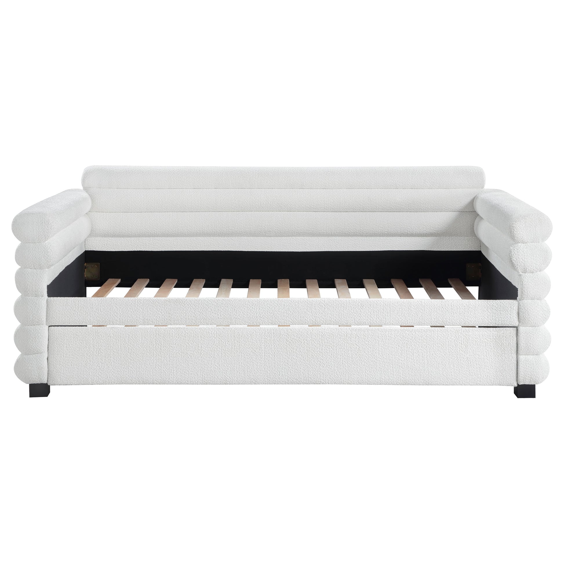 Patricia Boucle Upholstered Twin Day Bed with Trundle White