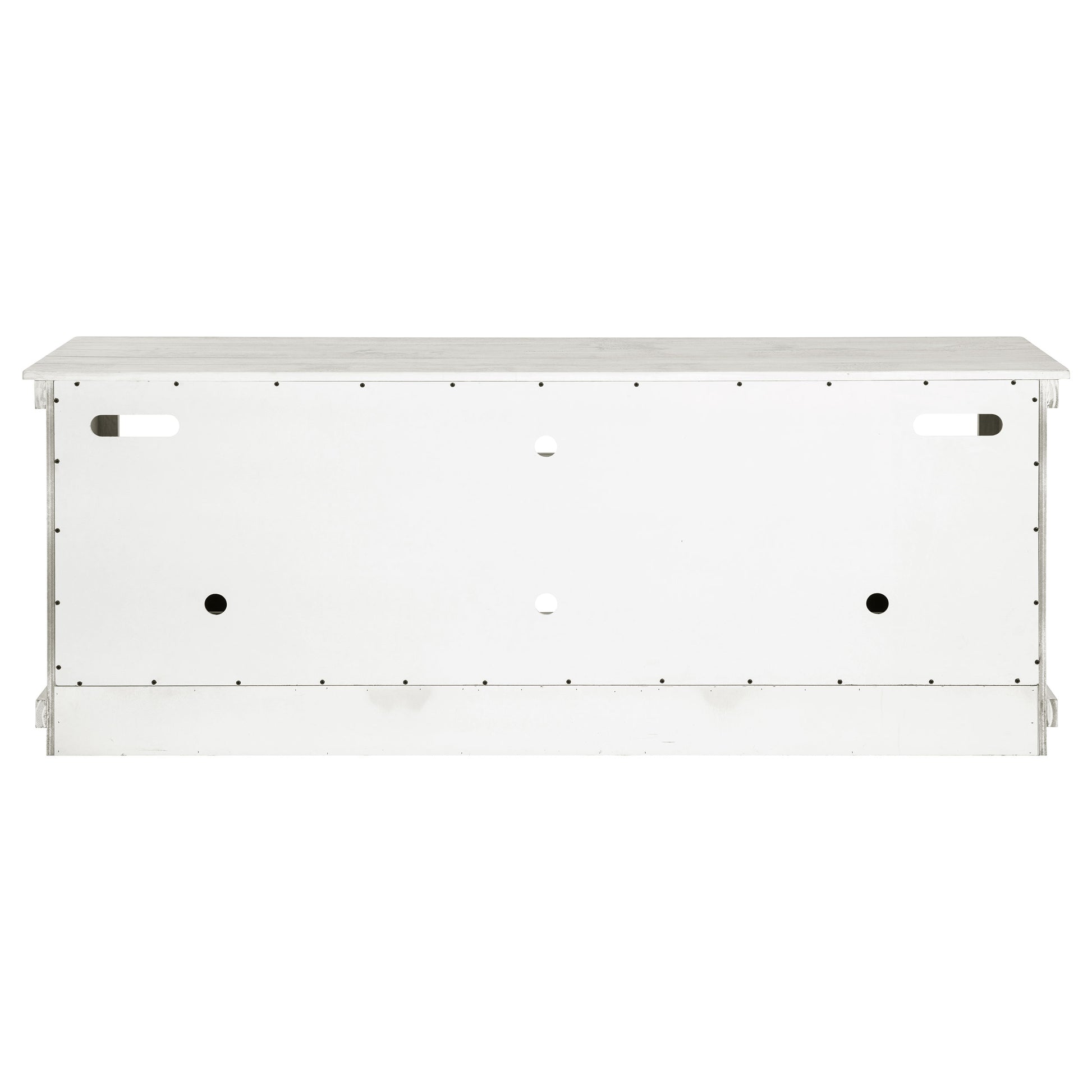 Introduce expansive storage underneath your flat panel television with this modern farmhouse TV stand. It's a wooden design with roughhewn details that offer charming texture and casual allure in your living room or den. Two cabinets offer decorative doors while providing plenty of interior storage that helps to create a tidy look in your living room. Two open shelves create space for media and gaming components mixed with decor that offers a personalized touch. Cord management openings complete the design, making for a streamlined design that accommodates televisions up to 75 inches placed on top or mounted above.