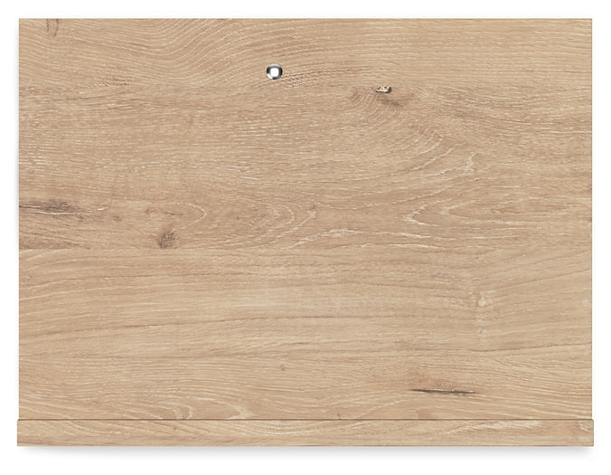 Clean-lined and contemporary—but far from stark—this bedroom package is a fresh style awakening. Pairing a light finish with replicated oak grain and textured beige details that replicate the look of cane, its mixed materials bring a naturally versatile vibe to your bedroom. Sleek, simple hardware plays perfectly with the modern aesthetic.
