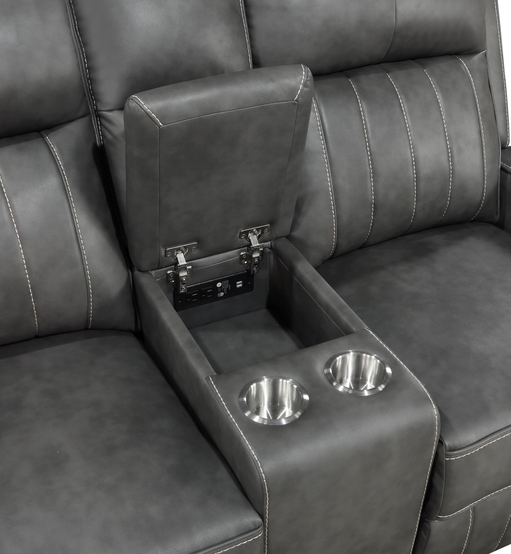 • Loveseat includes a flip-top console with storage and two integrated cup holders