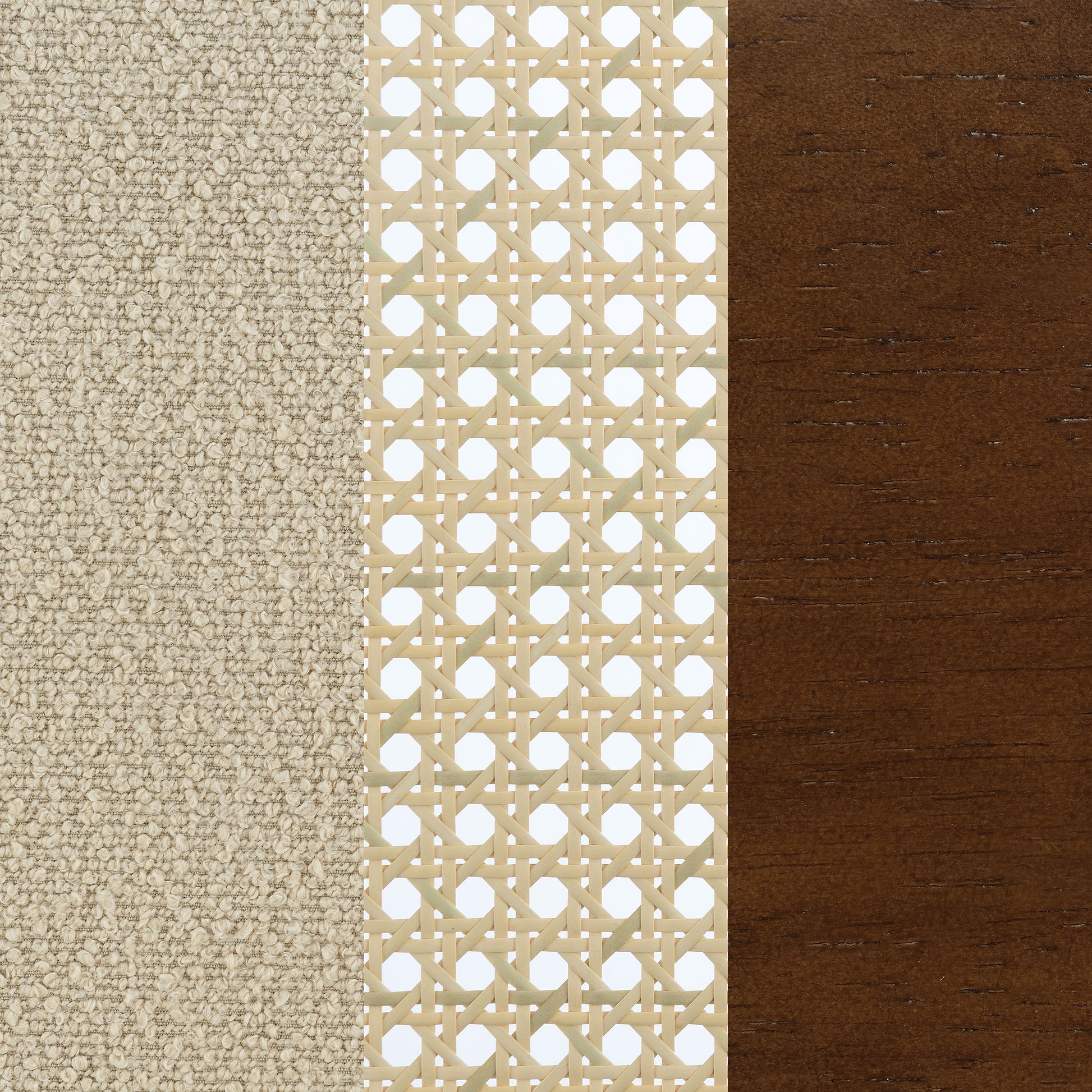 This accent chairs introduces a warm, airy presence to any living area. Lounge chair features a rattan open cane webbing back that breathes natural style and a fabric upholstered cushioned seat for soft, supportive comfort. The solid hardwood frame provides timeless stability. Ideal as occasional chair for reading nooks or side chair in conversation areas, this piece blend casual elegance with functional seating.
