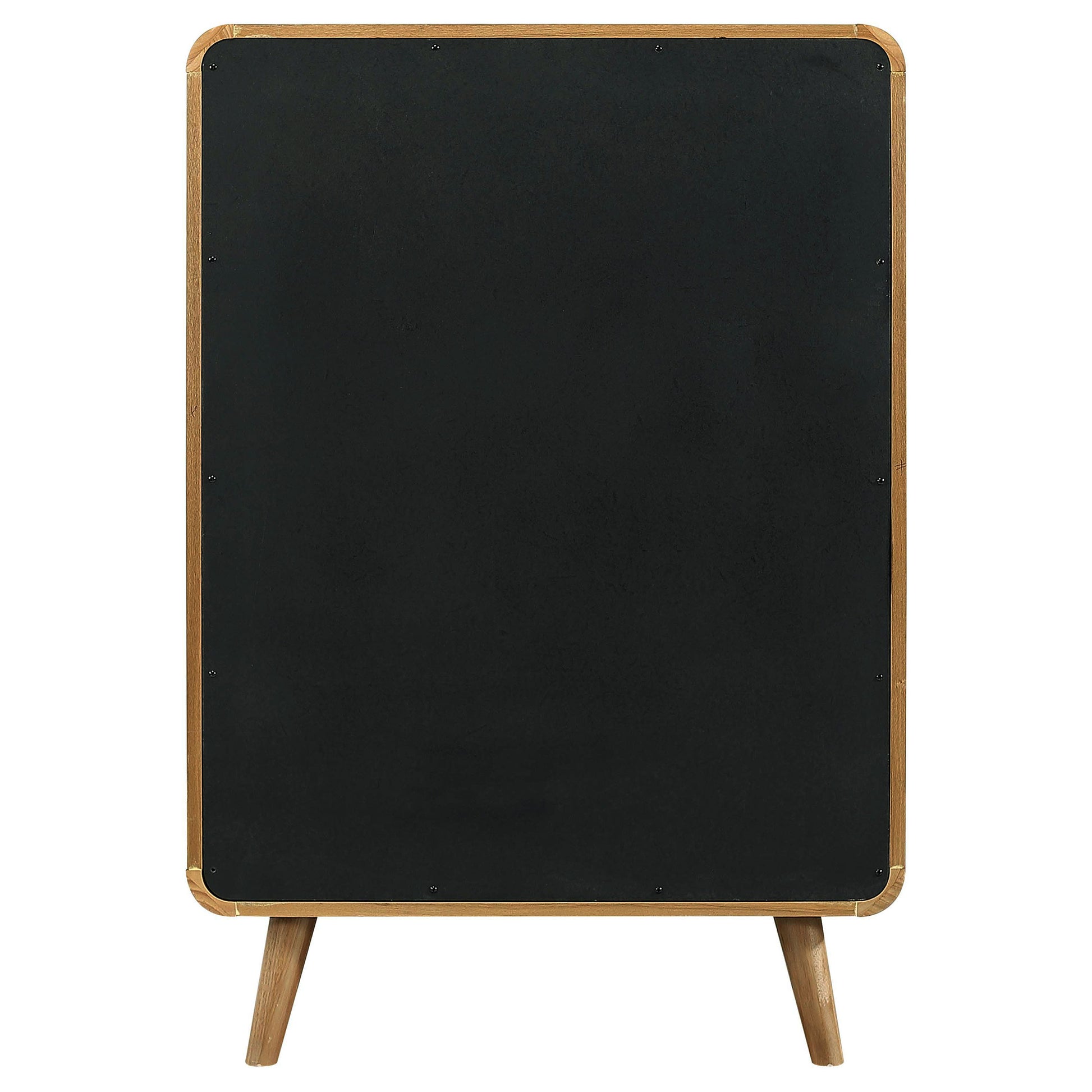 Stylishly organize your wardrobe with this mid-century modern chest of drawers, built with rubberwood, engineered wood, and ash veneer for durability and style. Featuring five spacious drawers, it offers ample storage for clothing and accessories. Rounded edges and tapered legs lend retro flair, while felt-lined top drawers add a touch of functionality. Smooth drawer glides and subtle metallic hardware complete this elegant storage piece.