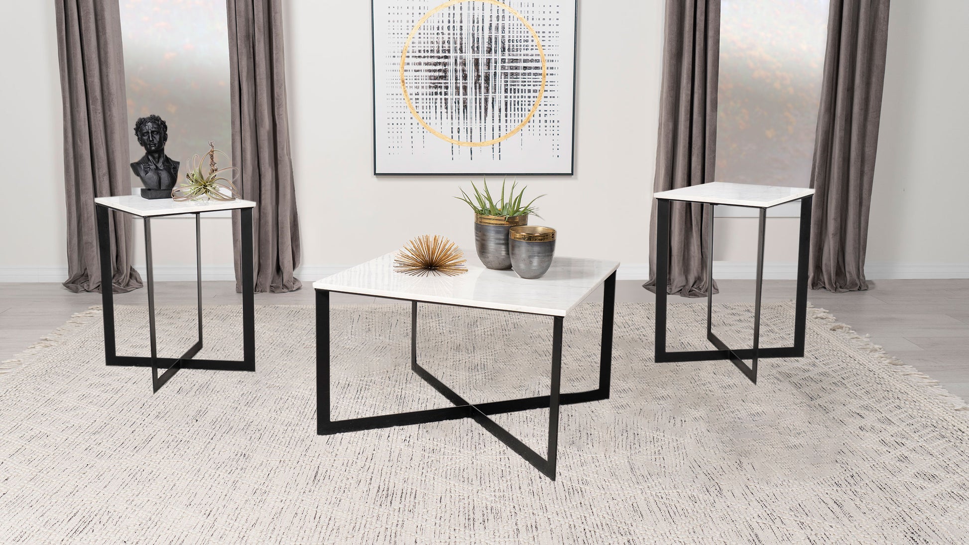 Tobin 3-piece Marble Top Coffee and End Table Set White