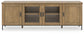 | Details | Made with solid wood frame, birch veneer, MDF substrate and steel, Clean medium brown wood finish, Tubular steel legs with matte black powder coat finish, 2 outside cabinets, each with an adjustable shelf for concealed storage, Center cabinet with inset glass doors and 2 adjustable shelves, Cutouts for cord management, Assembly required | |