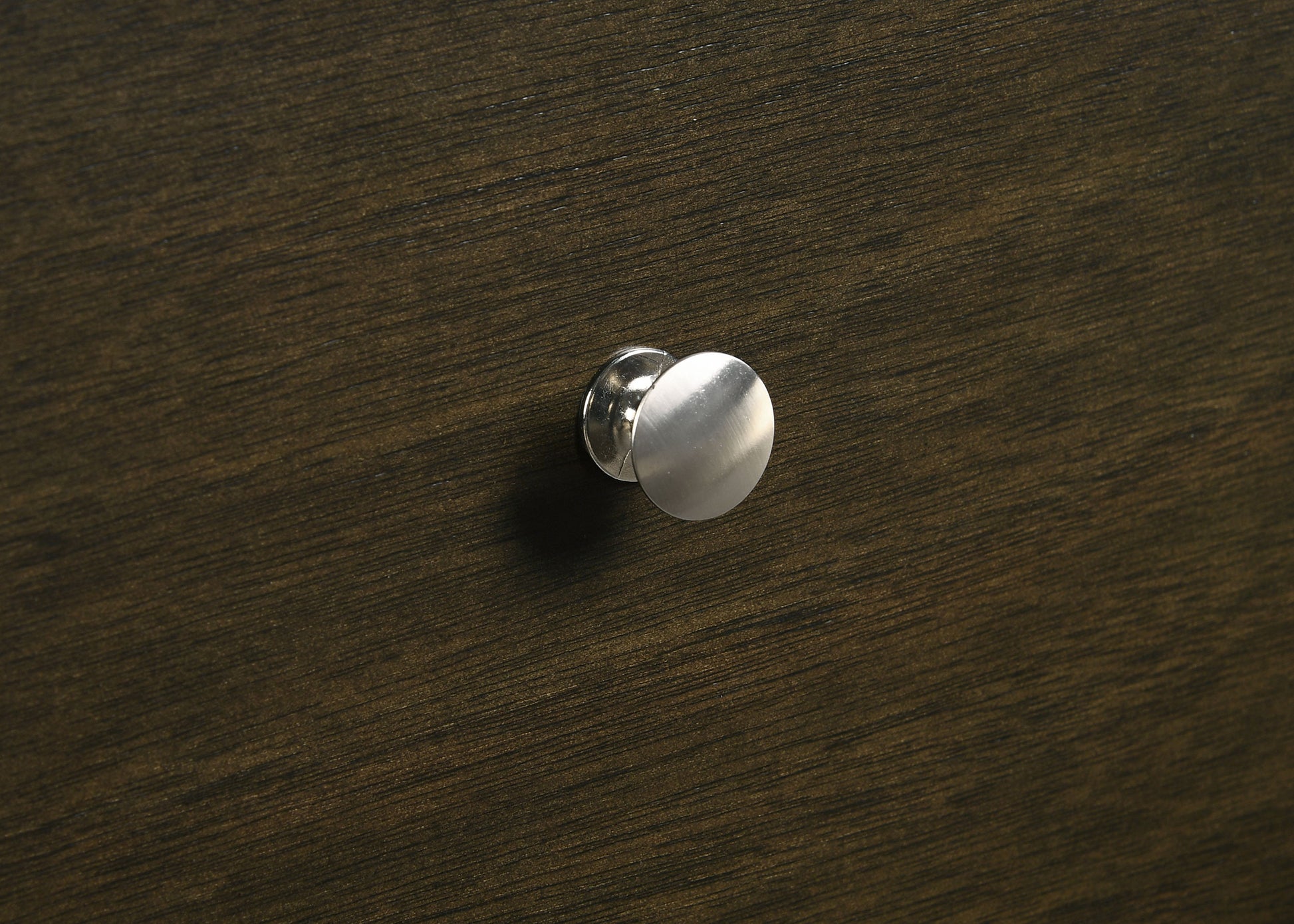 This four-drawer chest offers a perfect blend of function and style with its deep drawers and sleek design. The dark cocoa finish highlights the chest’s vertical details, bringing warmth and sophistication to your space. Brushed nickel hardware provides a contemporary contrast, enhancing the modern appeal of the piece. The drawers glide smoothly on center metal glides, making it easy to access your belongings. Crafted from high-quality materials, this chest is designed to offer long-lasting durability and style.
